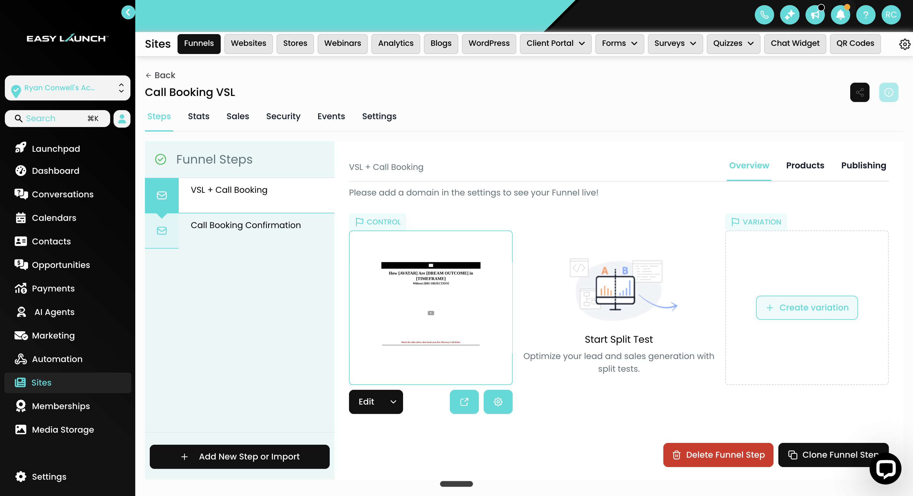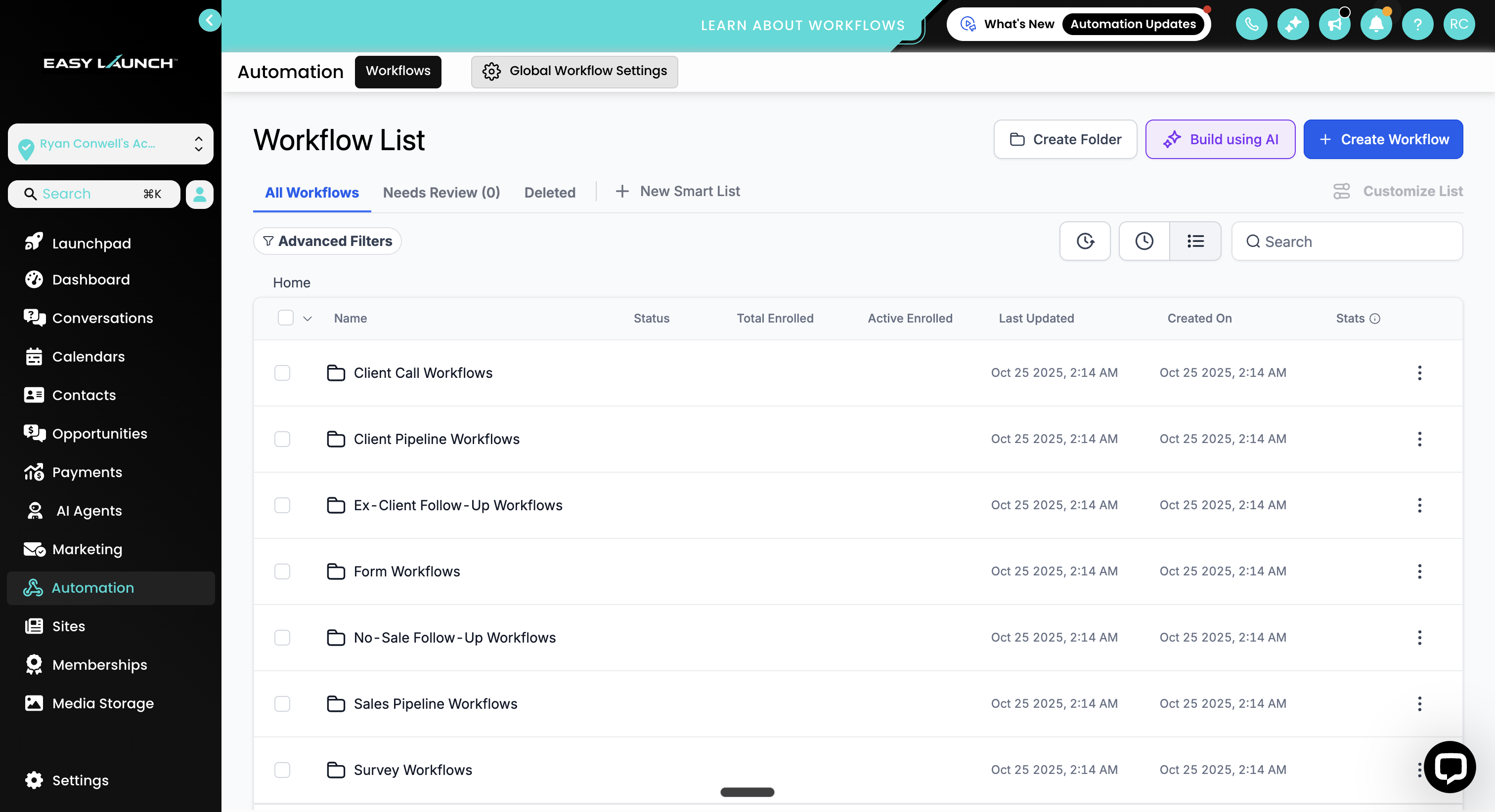 Easy Launch is a pre-built backend for online coaches. It includes your website, funnels, CRM, automations, booking system and onboarding — already structured and ready to activate.